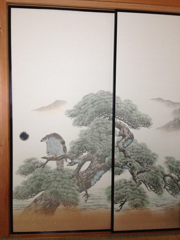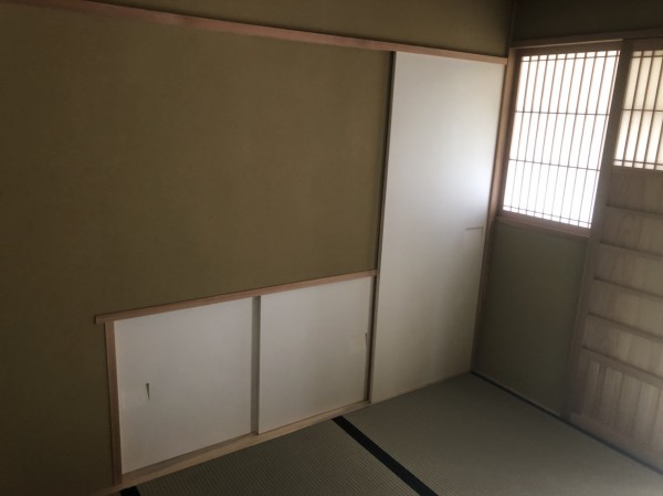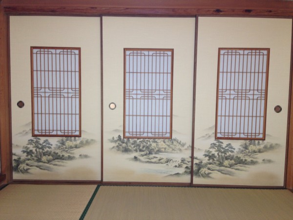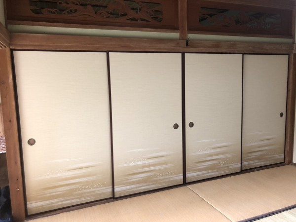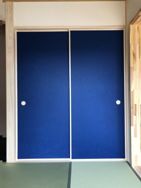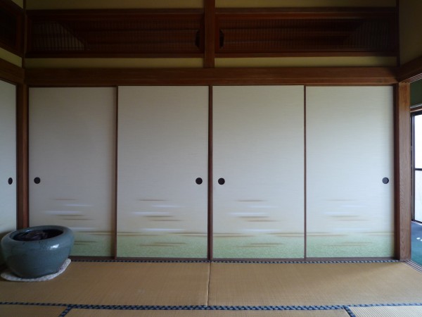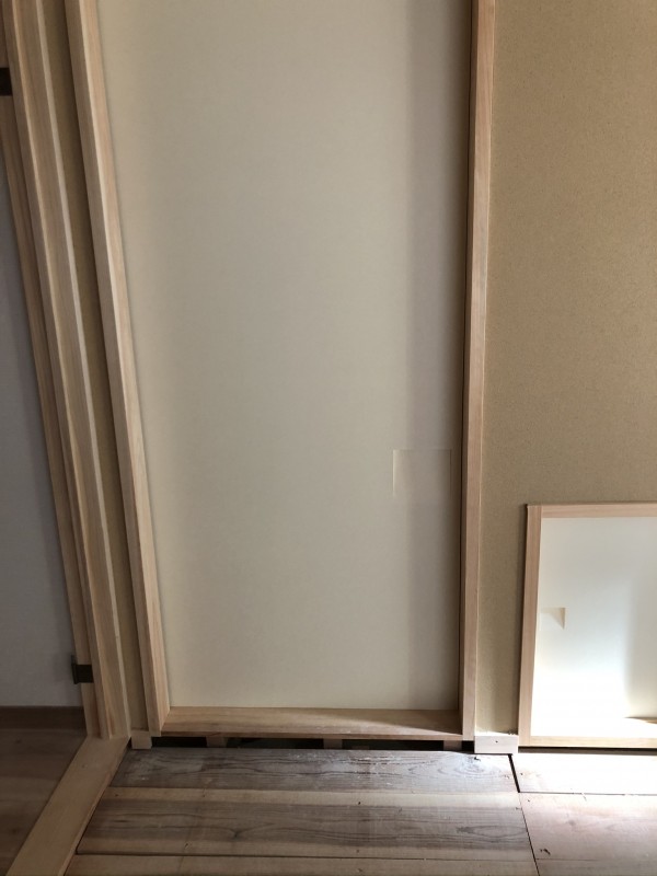 襖紙(鳥の子紙)縁(白木)引手(木製)